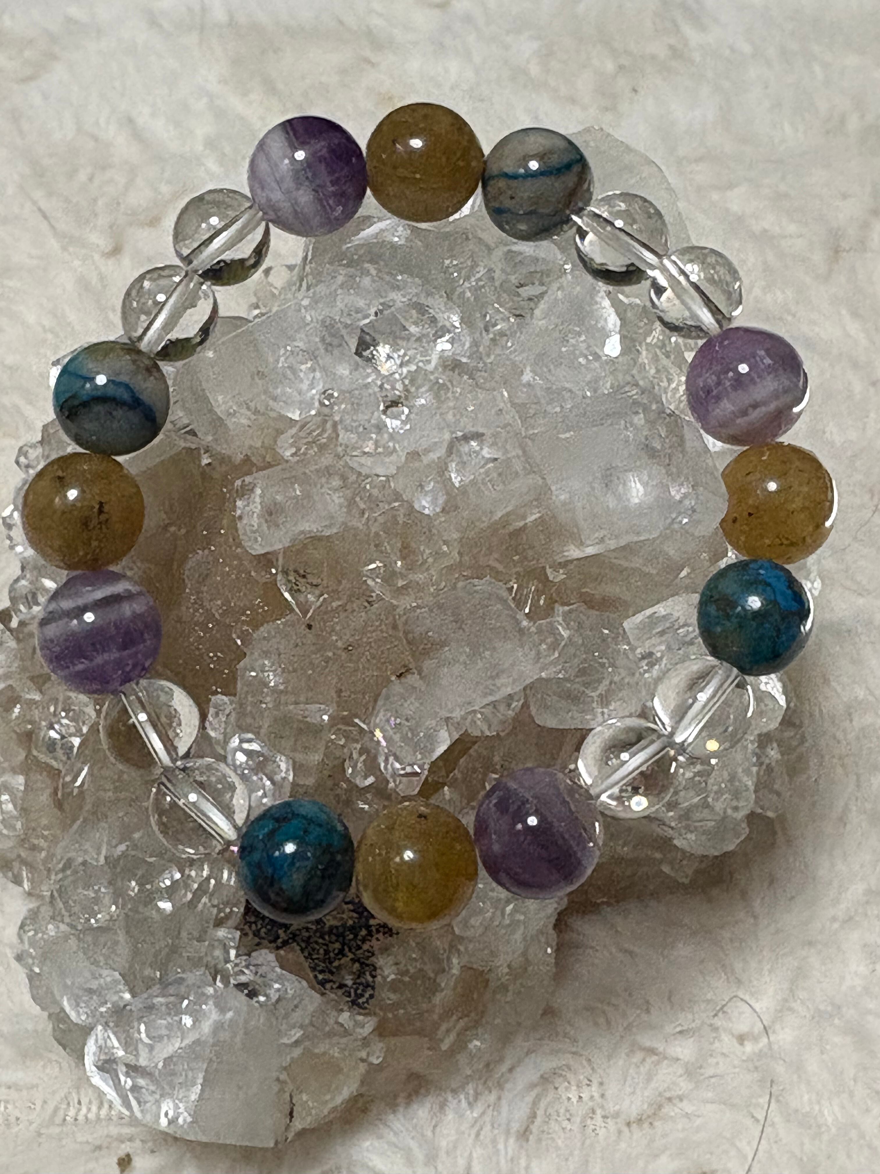 シェブロンアメジスト✖️クリソコラ✖️ゴールデンマイカ✖️水晶⭐️ブレスレット